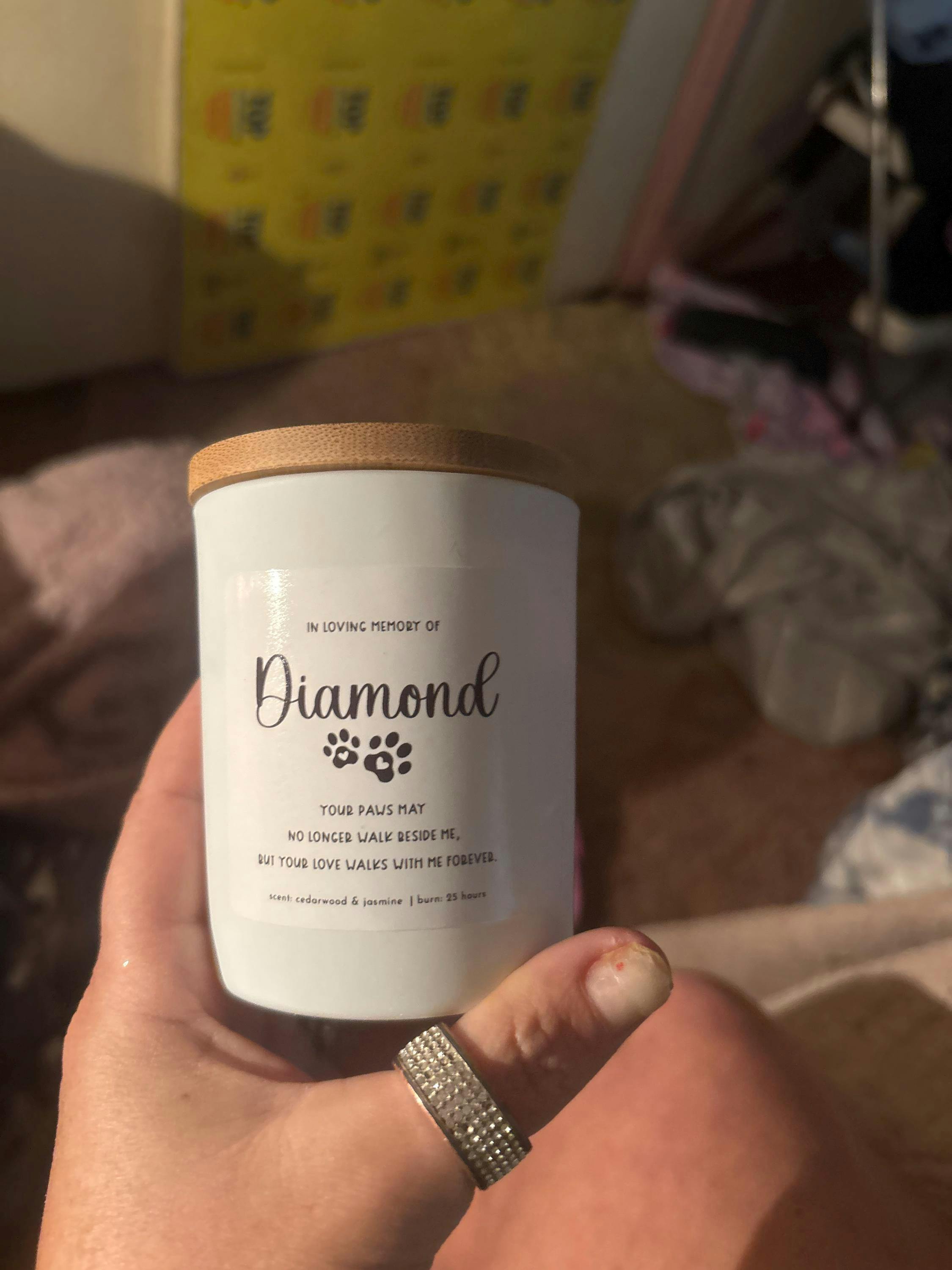 Honor the memory of a beloved pet with our Personalized Pet Memorial Candle. This thoughtful candle is a beautiful way to remember a dog, cat, or furry friend who has crossed the rainbow bridge. The label reads “In Loving Memory” and can be personalized with your pet’s name, creating a keepsake that brings comfort and light during difficult times.